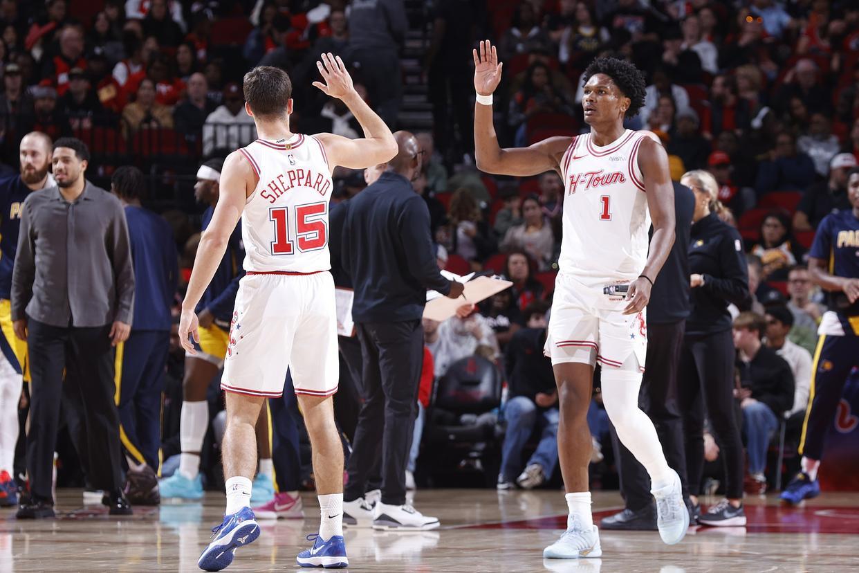 本场对阵黄蜂队,火箭队五位首发是阿门、谢泼德、小史密斯、杜兰特和申京。常规时间里出战的四位替补,分别是克劳福德、芬尼-史密斯、卡佩拉和谢泼德。而克劳福德应该是本场火箭队替补阵容当中表现最好的球员了。
