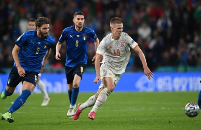下半场比赛,西班牙队继续占据场面优势,奥亚萨瓦尔游弋在前场右侧,攻击埃默松的肋部,奥尔莫则无处不在,他串联起西班牙的进攻。当然,西班牙人的身体竞技状态在下半场有所下滑,让意大利有了更多机会。与此同时,意大利人不再选择冒险的高位逼抢,他们上抢的时机明显变得更合适了。或者说,这支球队踢得更像意大利了——我们一直没有忘记防守传统。